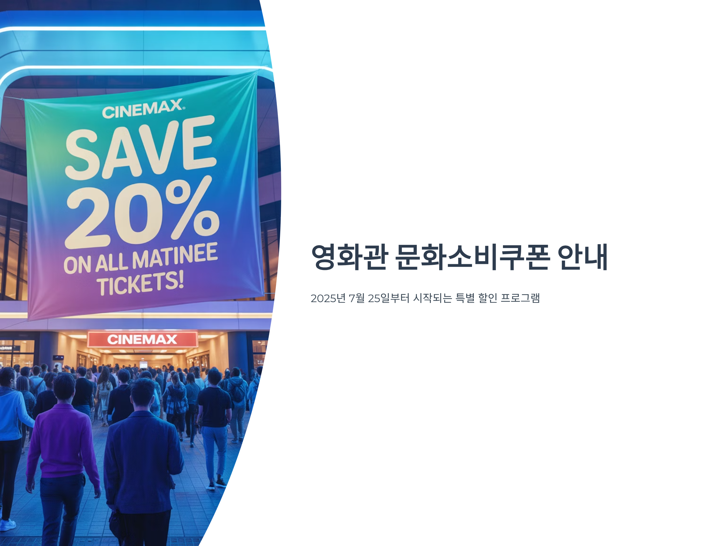 - ‘문화가 있는 날’ 또는 다른 할인제도와 중복 적용 가능 → 일부 상황에서 영화 관람료가 1,000원 수준으로 인하될 수 있음