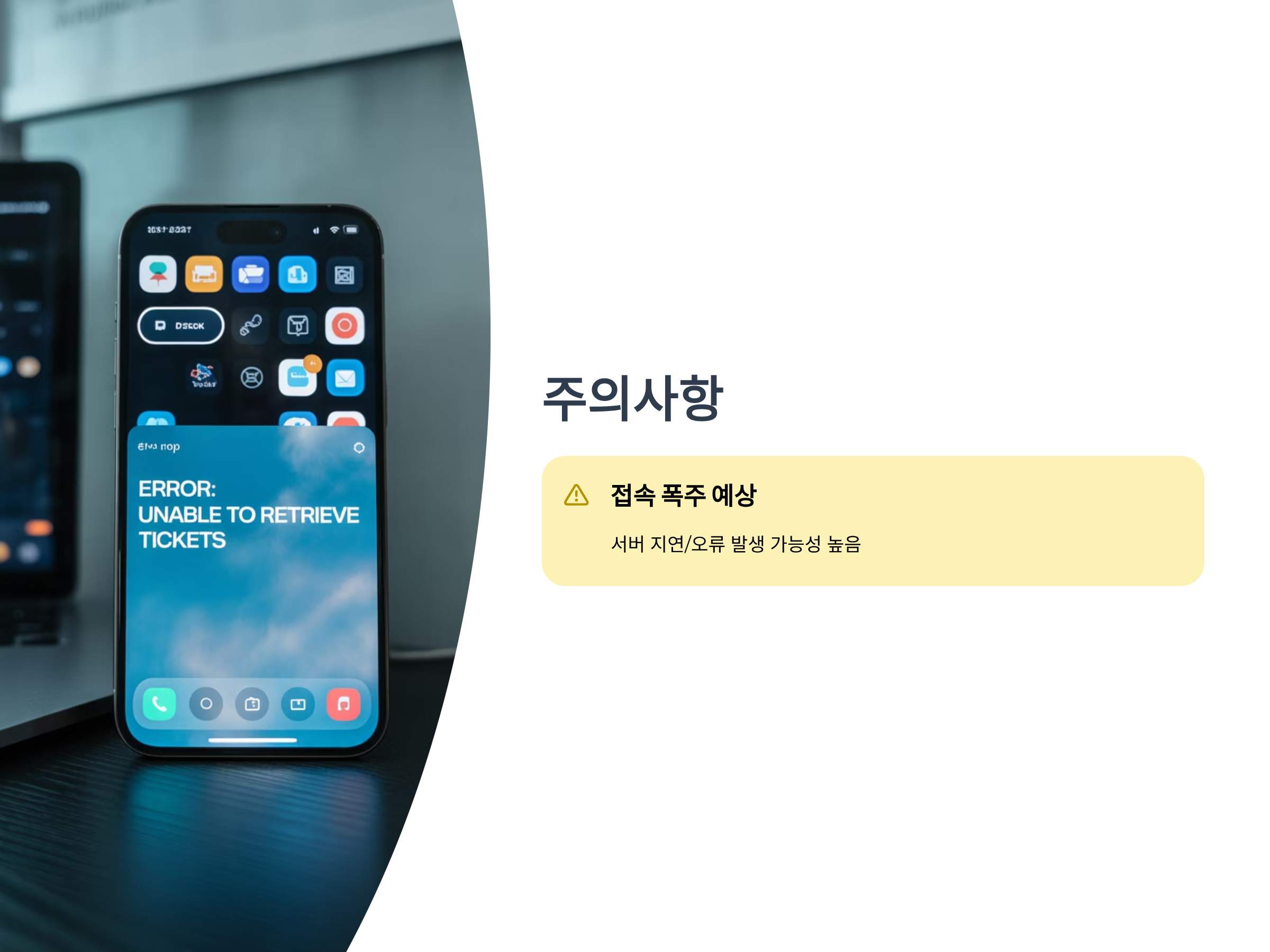📌 단, 접속량 몰림으로 인한 서버 지연 또는 오류가 발생했으며, 특히 홈페이지가 접속 불가 상태였고 모바일 앱 접속을 권장하는 상황이었어요