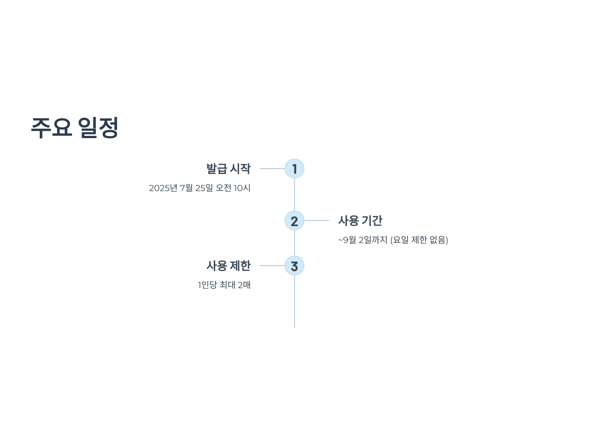 | 사용기간 | 2025년 9월 2일까지(요일 제한 없음), 1인당 최대 2매 사용 가능 |