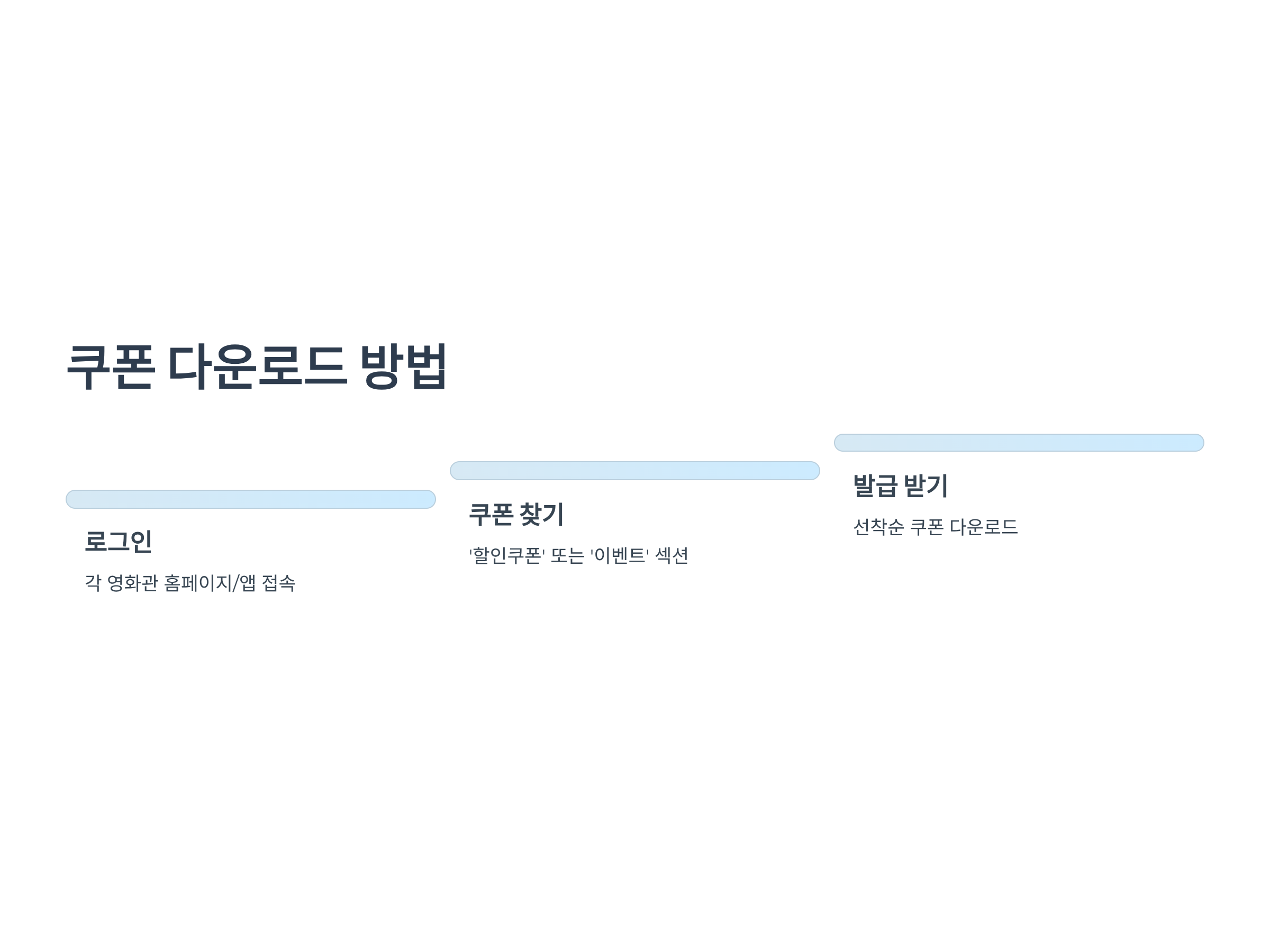 - 각 영화관 홈페이지 또는 모바일 앱에서 선착순으로 쿠폰 다운로드 페이지 접속 가능