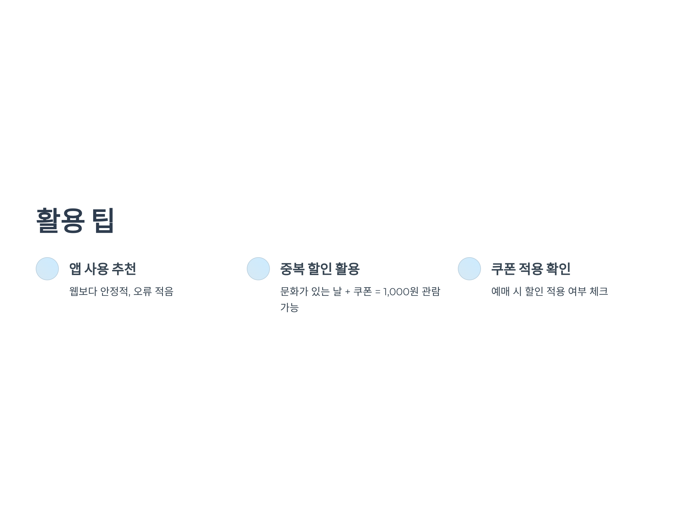 - 예매 시 자동 적용 또는 쿠폰 입력란 활용